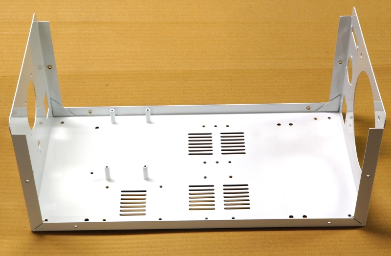 產品介紹 成品 控制盒 控制盒 電控箱 電控箱 控制盒 電控箱 半成品 散熱孔的加工 散熱孔的加工 圓孔、方孔、各式形狀 沖孔加工 植釘製程可以包含螺母、內牙螺柱,外牙螺柱 圓孔、方孔、各式形狀 沖孔加工 左為內牙螺柱,、中為沉頭孔、右為外牙螺柱 圓孔、方孔、各式形狀 沖孔加工 圓孔、方孔、各式形狀 沖孔加工 抽牙孔 板金折彎加工後